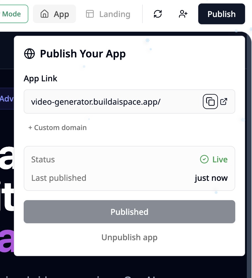 🎉 Congratulations! Your app is now live on your custom branded URL through BuildAI.Space. Share your unique link and impress your visitors with your personalized web presence.